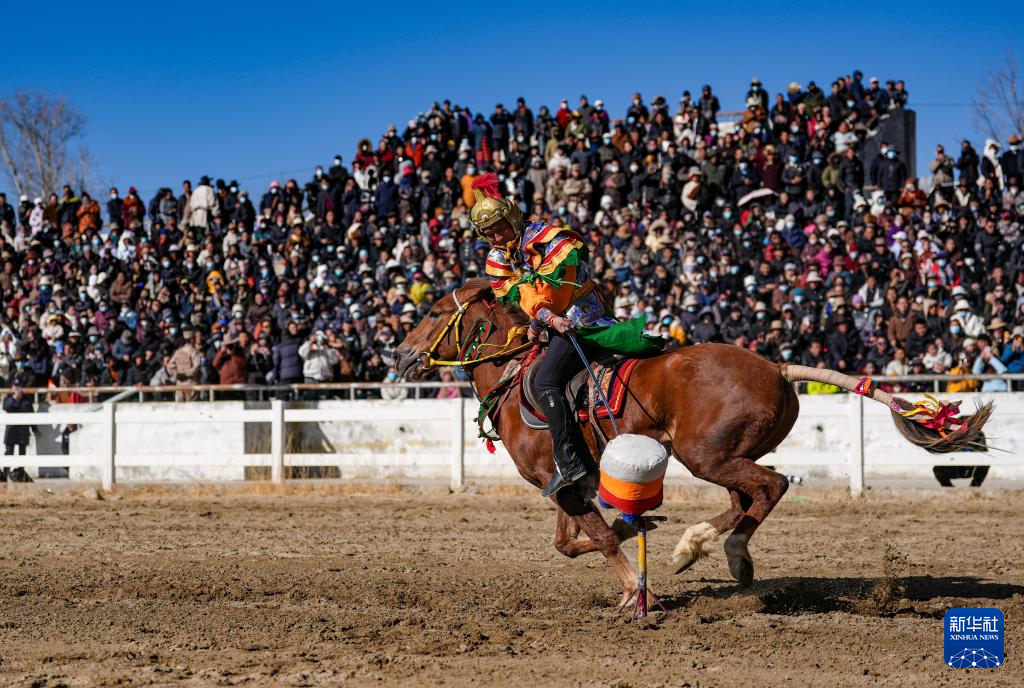 當(dāng)日,2025年藏歷新年初三民族傳統(tǒng)馬術(shù)表演暨民族賽馬活動在拉薩市北郊賽馬場舉行。馬術(shù)在西藏是吉祥、勇敢和智慧的象征。騎手們用精彩表演為觀眾送上新年的祝福。