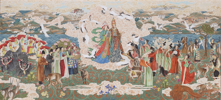 西藏的年畫起步較晚,但此次展覽卻給這一傳統(tǒng)藝術帶來了全新的發(fā)展契機。“新生活·新風尚·新年畫”展覽負責人扎西諾布介紹,展覽共展出近100幅作品,來自97位藝術家。不同地域的風格在這方展廳中碰撞、交融,江南水鄉(xiāng)的溫婉細膩、巴蜀大地的熱情奔放、湘楚文化的靈動飄逸、青藏高原的粗獷豪邁,都通過一幅幅年畫展現(xiàn)得淋漓盡致。