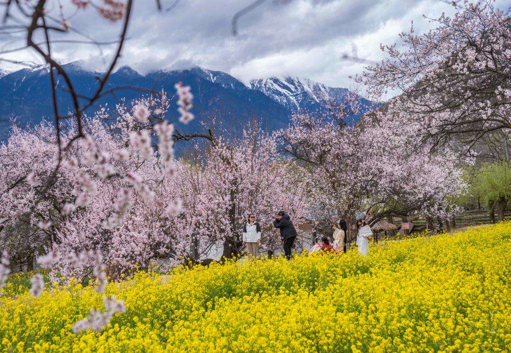 2024年3月,游客在林芝市巴宜區(qū)嘎拉村拍照留念。(新華社記者 孫非 攝)
