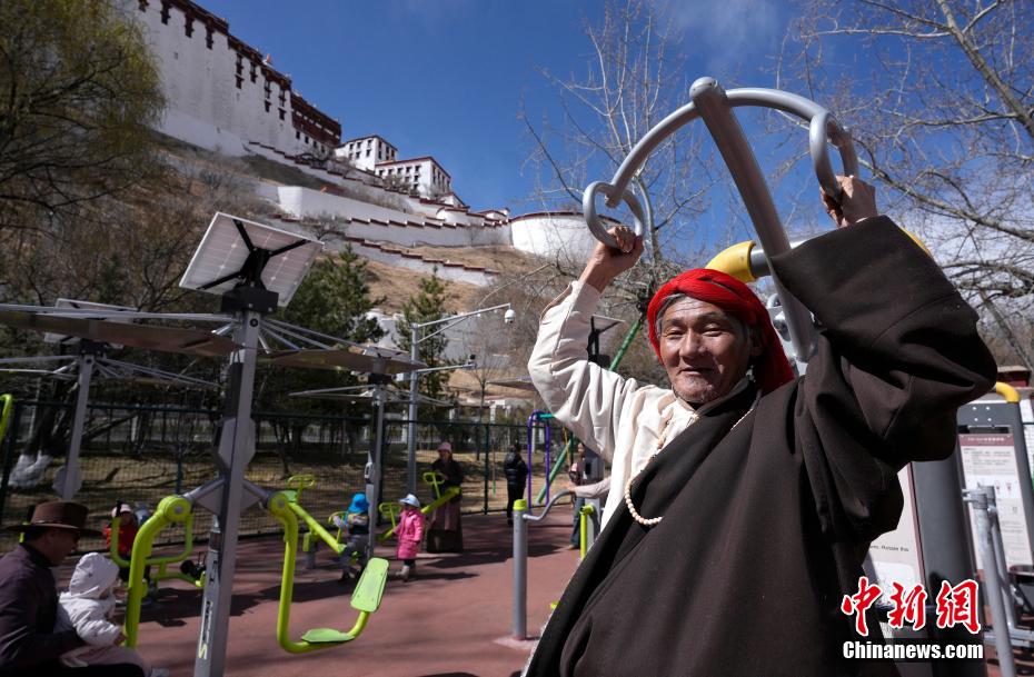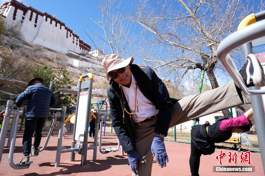 3月13日,民眾在西藏拉薩宗角祿康公園健身。坐落于布達(dá)拉宮腳下的宗角祿康公園是拉薩民眾戶(hù)外活動(dòng)的一大場(chǎng)所。隨著3月春回拉薩,大家來(lái)到公園散步、健身,一片春意盎然的景象。中新社記者 李林 攝