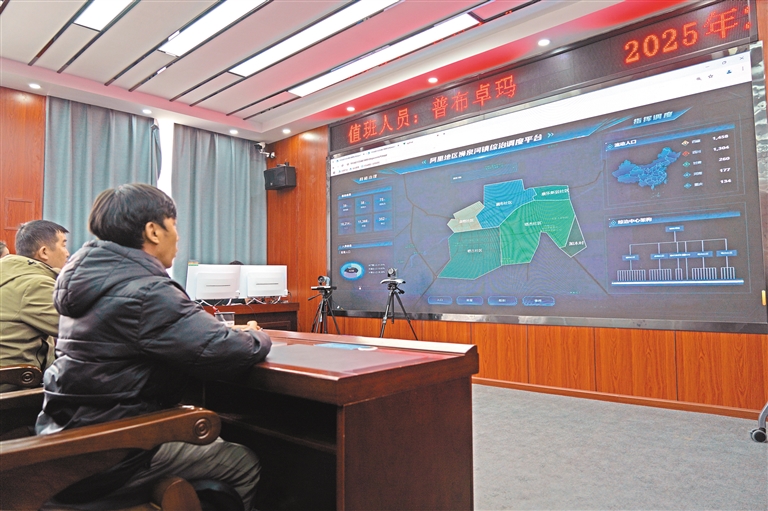 圖為噶爾縣獅泉河鎮(zhèn)綜治中心“一張網(wǎng)”調(diào)度平臺一角。 本報記者 洛桑旦增 達珍 攝