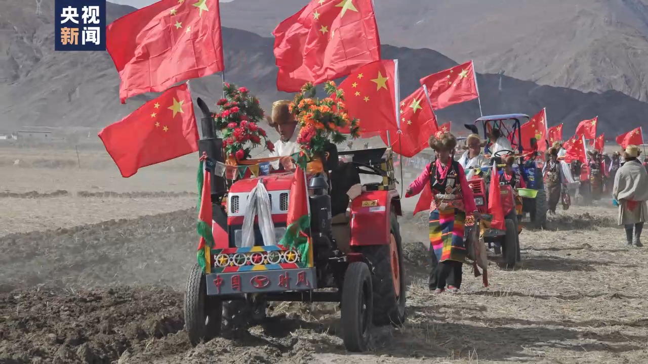 西藏拉孜“春耕第一犁”開啟 “盛裝”拖拉機(jī)犁出“春耕進(jìn)行曲”