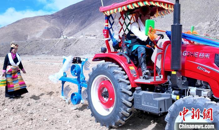3月16日,唐加鄉(xiāng)沖尼村村民用拖拉機耕地。拉巴卓瑪 攝