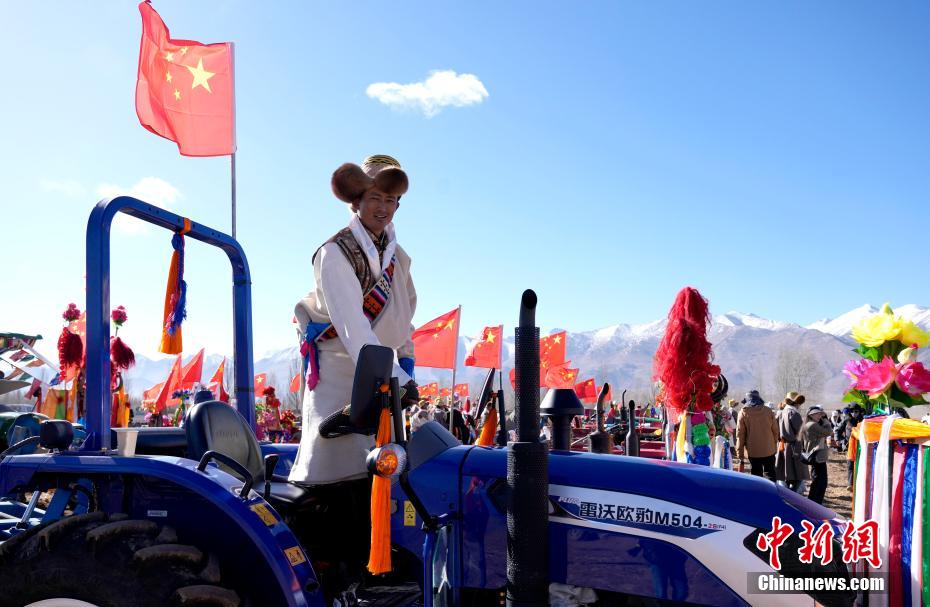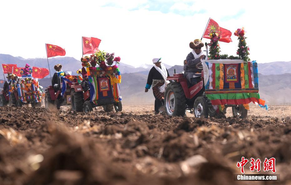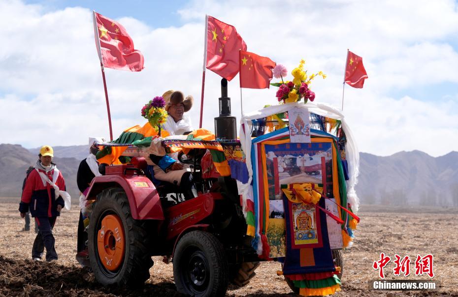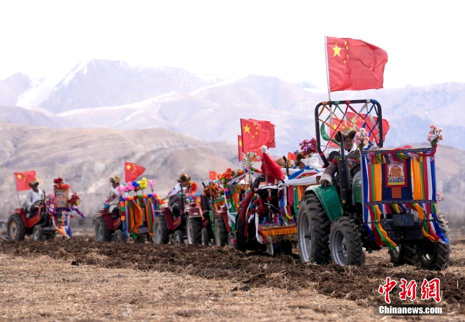 3月16日,是西藏農(nóng)區(qū)開耕的日子。村民身著節(jié)日盛裝,相聚在田間。傳統(tǒng)的“二牛抬杠”開啟“第一犁”后,拖拉機(jī)緊隨其后,婦女將手中的種子撒下,祈求風(fēng)調(diào)雨順、農(nóng)業(yè)豐收。圖為西藏拉薩市林周縣強(qiáng)嘎鄉(xiāng)春耕儀式現(xiàn)場(chǎng)。中新社記者 李林 攝