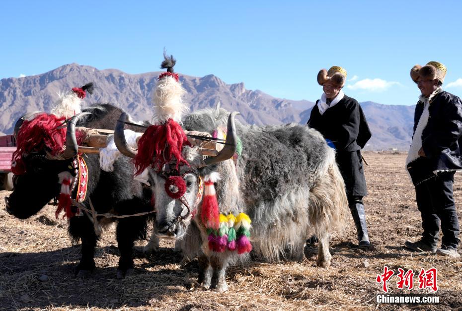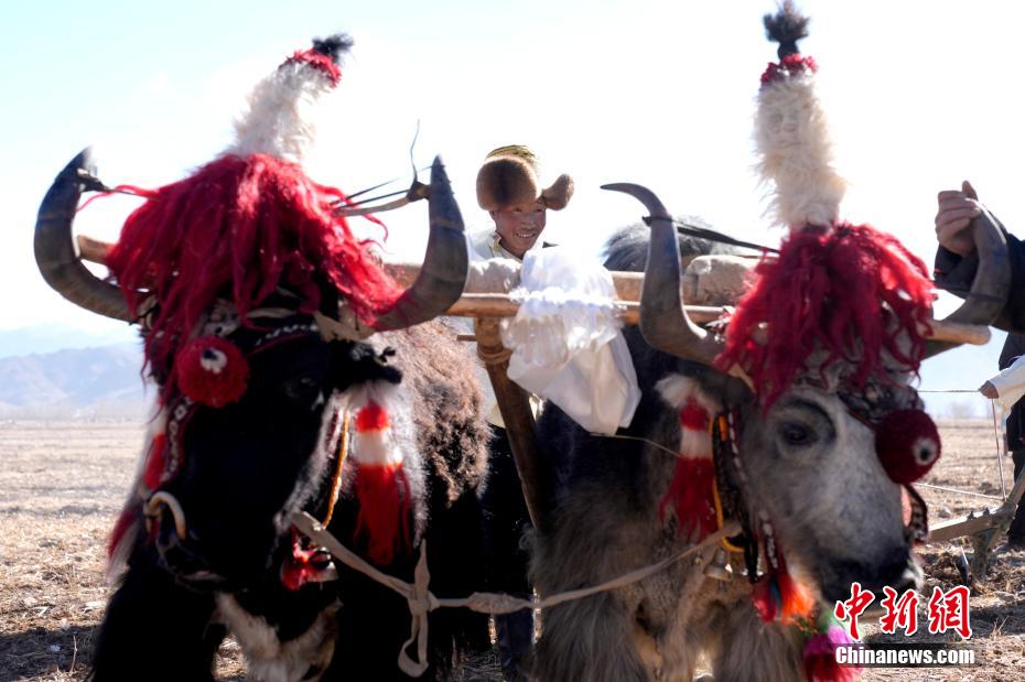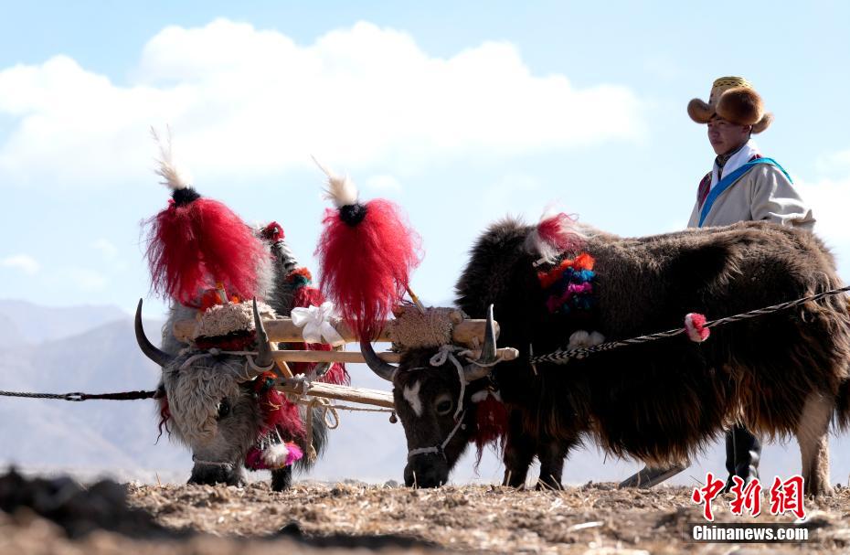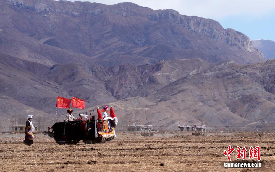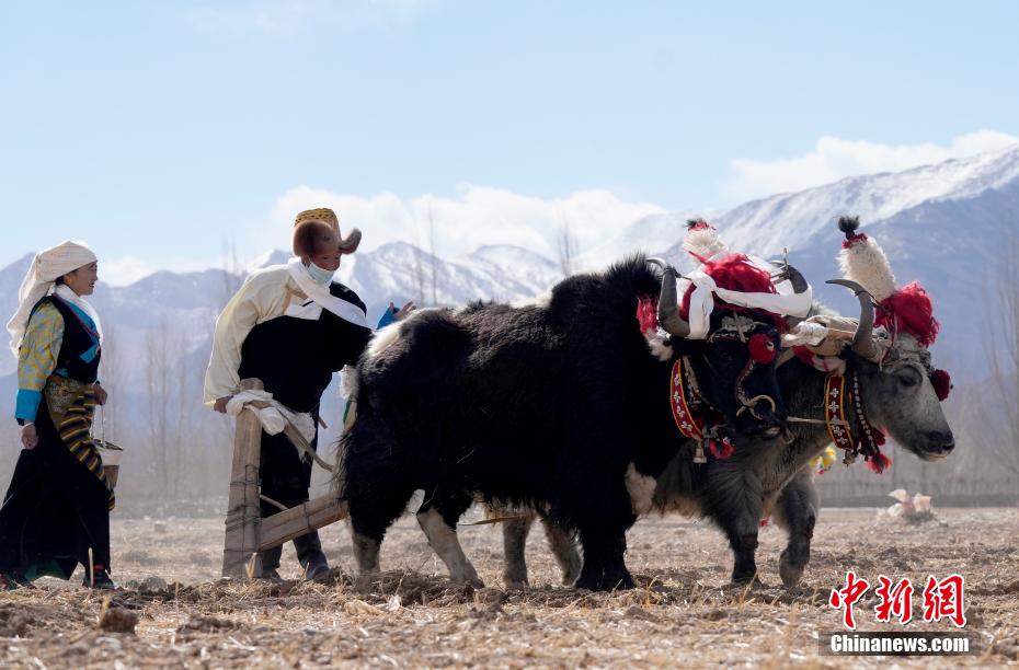 3月16日,是西藏農(nóng)區(qū)開耕的日子。村民身著節(jié)日盛裝,相聚在田間。傳統(tǒng)的“二牛抬杠”開啟“第一犁”后,拖拉機(jī)緊隨其后,婦女將手中的種子撒下,祈求風(fēng)調(diào)雨順、農(nóng)業(yè)豐收。圖為西藏拉薩市林周縣強(qiáng)嘎鄉(xiāng)春耕儀式現(xiàn)場(chǎng),“二牛抬杠”開啟“第一犁”。中新社記者 李林 攝