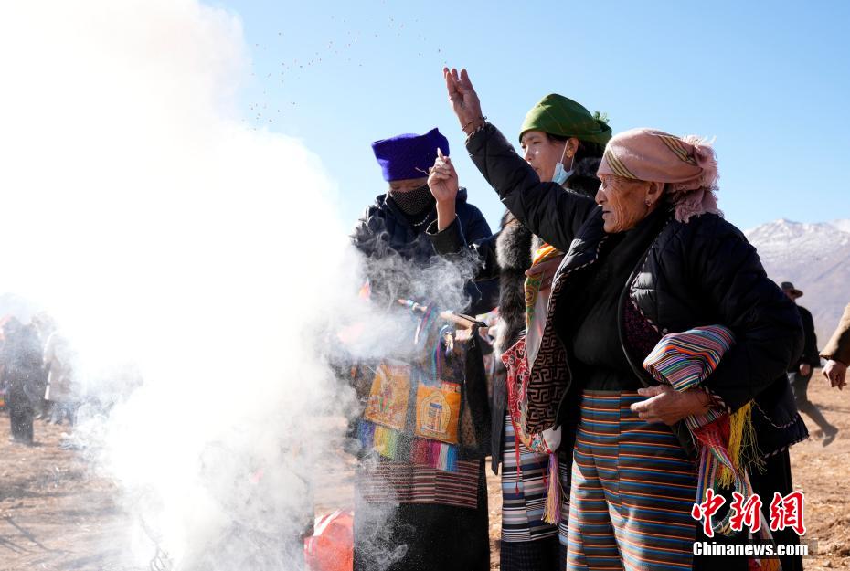 3月16日,是西藏農(nóng)區(qū)開耕的日子。村民身著節(jié)日盛裝,相聚在田間。傳統(tǒng)的“二牛抬杠”開啟“第一犁”后,拖拉機(jī)緊隨其后,婦女將手中的種子撒下,祈求風(fēng)調(diào)雨順、農(nóng)業(yè)豐收。圖為西藏拉薩市林周縣強(qiáng)嘎鄉(xiāng)春耕儀式現(xiàn)場(chǎng),村民煨桑。中新社記者 李林 攝