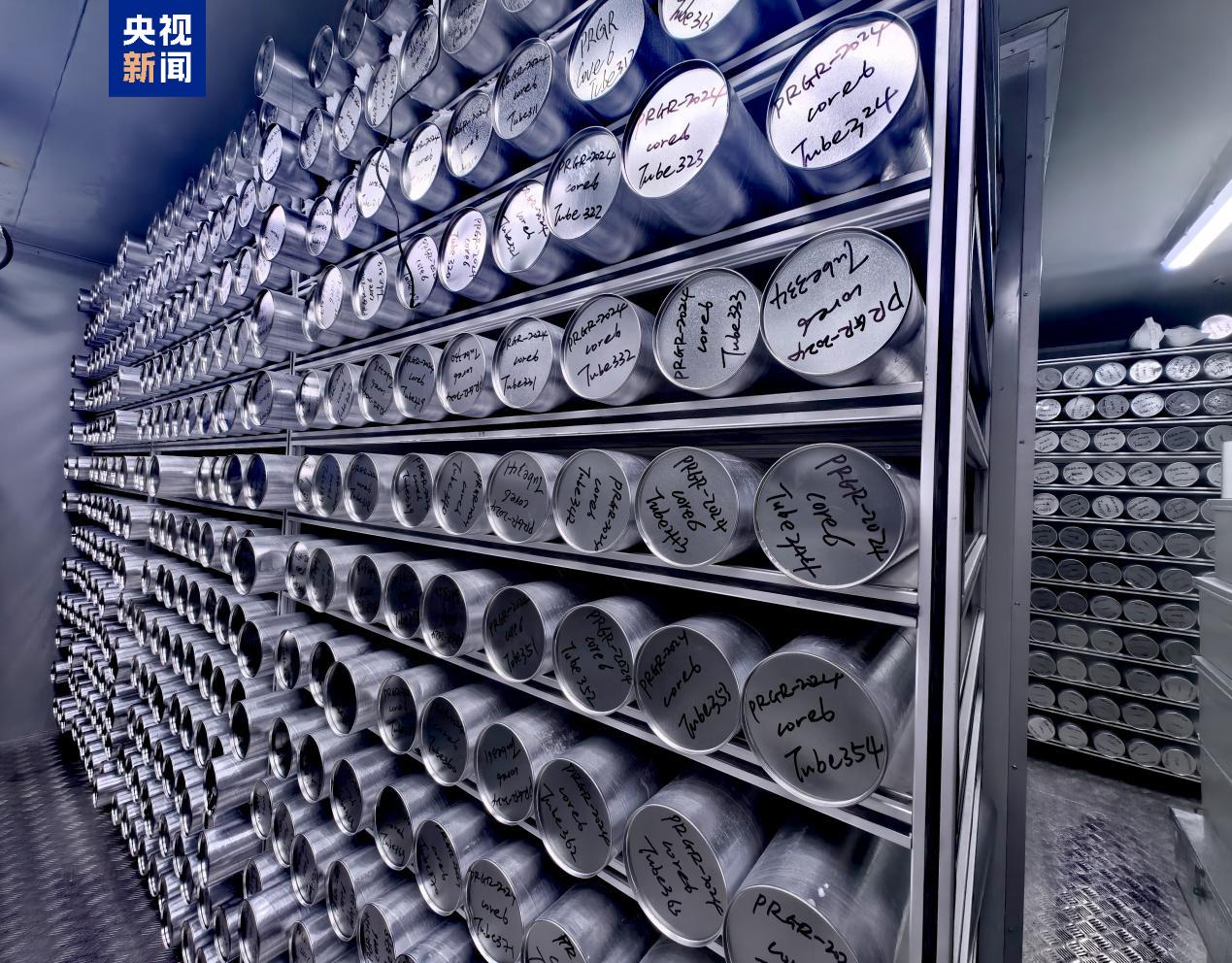 2025年3月,青藏高原冰芯庫(kù)里的普若崗日冰芯。