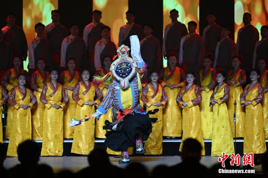 3月27日晚,為紀(jì)念西藏百萬農(nóng)奴解放66周年,由中共拉薩市委、拉薩市人民政府主辦,拉薩市委宣傳部承辦的“盛世中國(guó)幸福西藏”拉薩市紀(jì)念西藏百萬農(nóng)奴解放66周年群眾合唱比賽,在拉薩市群眾文化體育中心激昂上演。據(jù)悉,本次合唱比賽共有11支隊(duì)伍,由拉薩市各縣(區(qū))、功能園區(qū)、農(nóng)牧民群眾、企業(yè)職工等組成。所有演唱者們精神飽滿,歌聲或激昂有力,或深情婉轉(zhuǎn),歌頌西藏66年來從黑暗走向光明、從貧窮走向富裕的偉大跨越。圖為拉薩市堆龍德慶區(qū)代表隊(duì)在演唱《天路》前表演藏戲。