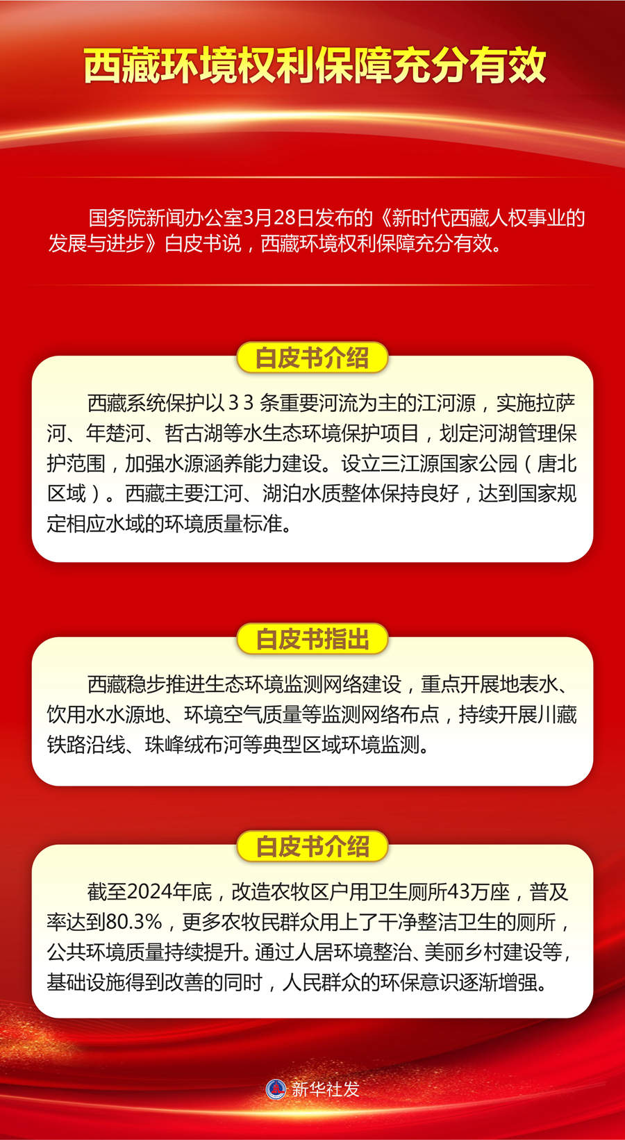 國(guó)務(wù)院新聞辦公室28日發(fā)布的《新時(shí)代西藏人權(quán)事業(yè)的發(fā)展與進(jìn)步》白皮書說,西藏環(huán)境權(quán)利保障充分有效。