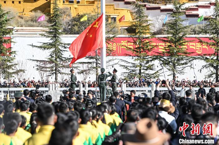 3月28日,“3·28”西藏百萬農(nóng)奴解放66周年“升國旗、唱國歌”儀式現(xiàn)場。李林 攝