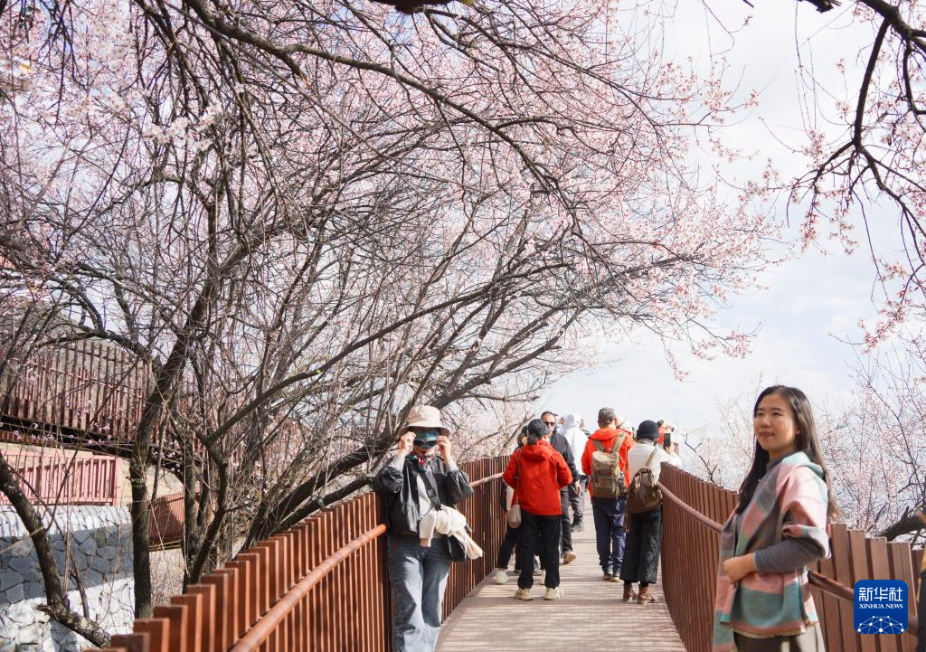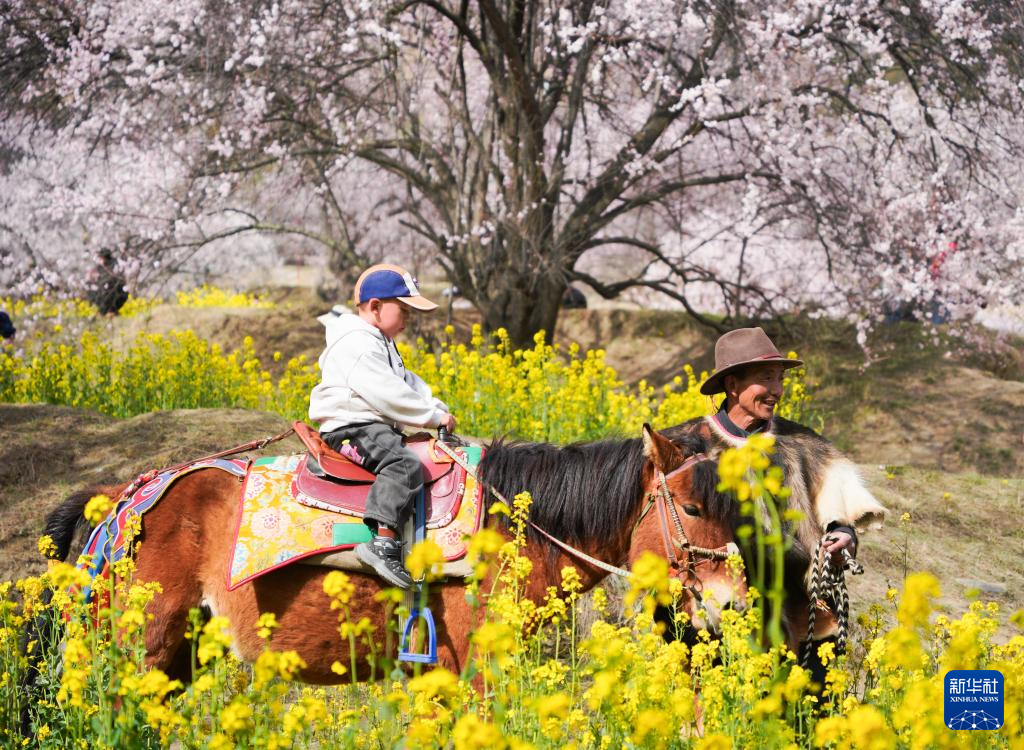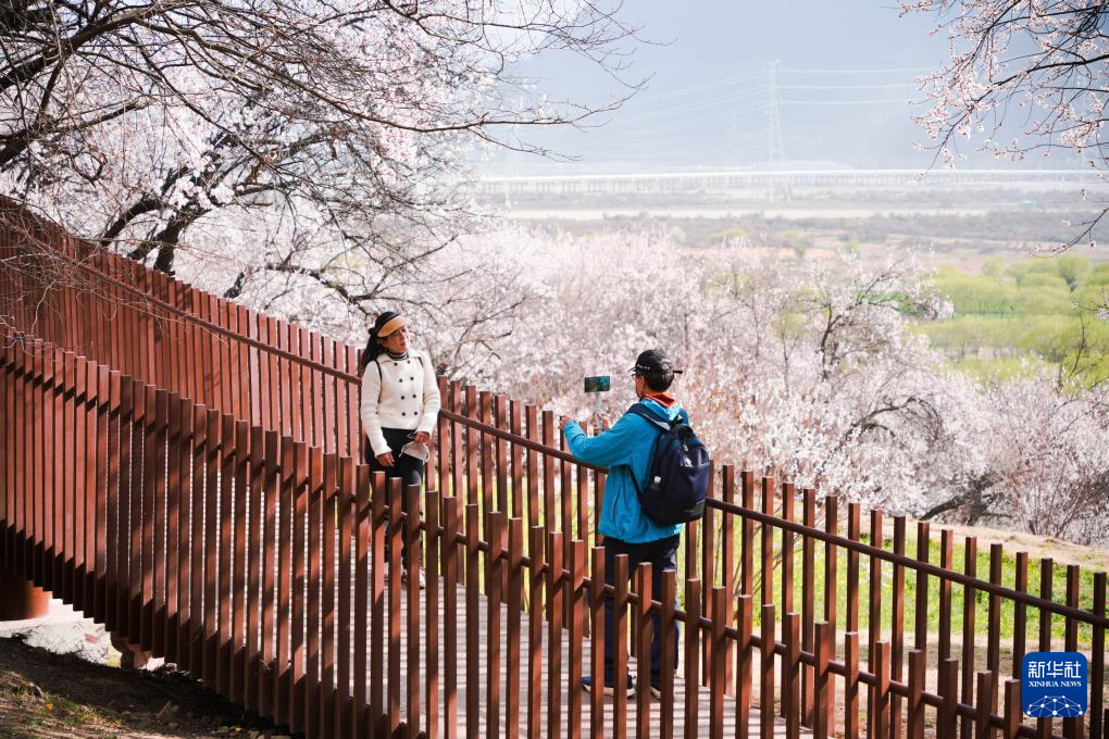 3月29日,游客在林芝市巴宜區(qū)嘎拉村賞花游玩。新華社記者 齊芷玥 攝
