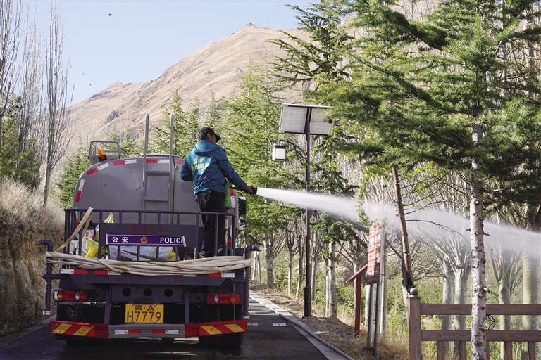 自2024年二期項目啟動以來,布麥村村民格桑仁增便參與建設(shè)。他說:“我主要負責(zé)苗木搬運和坑穴挖掘,每天有230元收入,工作地點離家近,還能兼顧農(nóng)活,我很滿意現(xiàn)在的工作?!?/p>