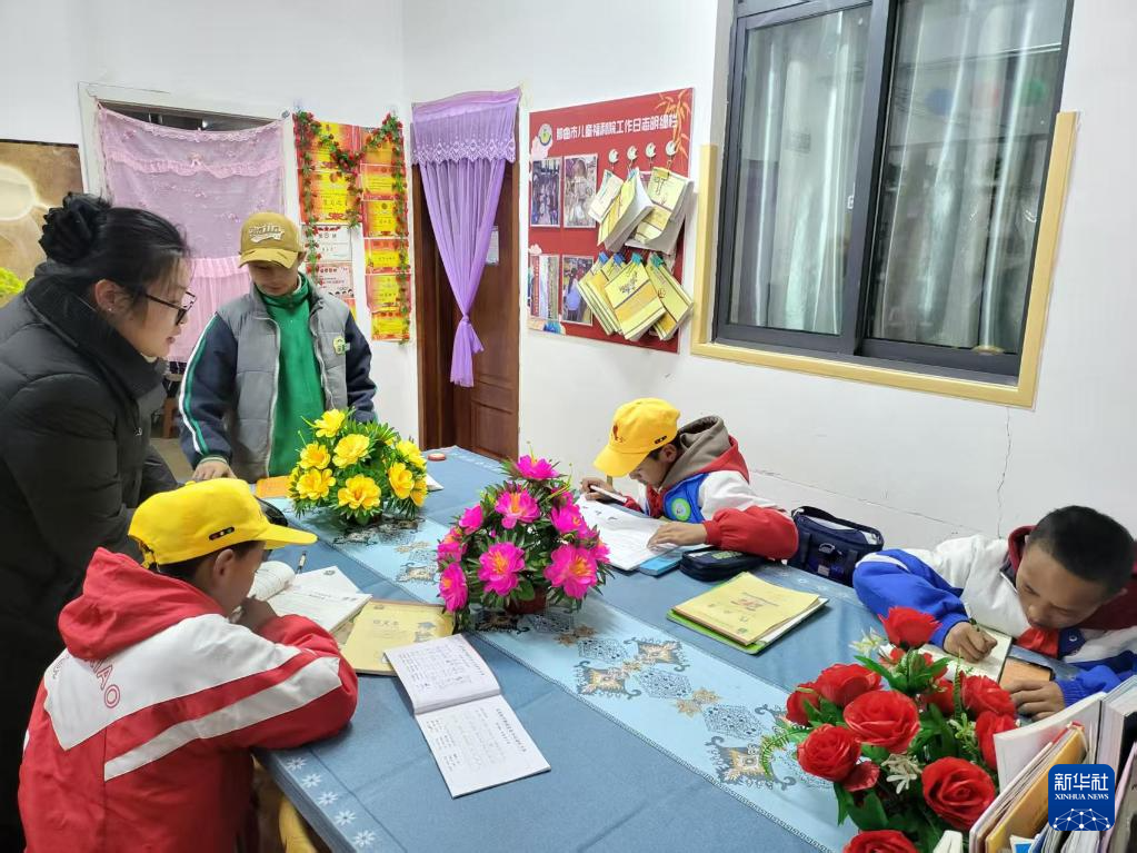 2025年3月17日,周雪在兒童福利院與放學(xué)回去的孩子談心,了解他們?cè)趯W(xué)校的情況。(受訪者供圖)