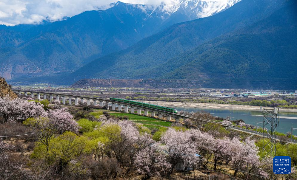 透過車窗,拉林鐵路沿線的風(fēng)景長卷徐徐展開。列車從拉薩出發(fā),首先映入眼簾的是連綿起伏的雪山,如銀色巨龍蜿蜒而行,與初綻的桃花交相輝映。