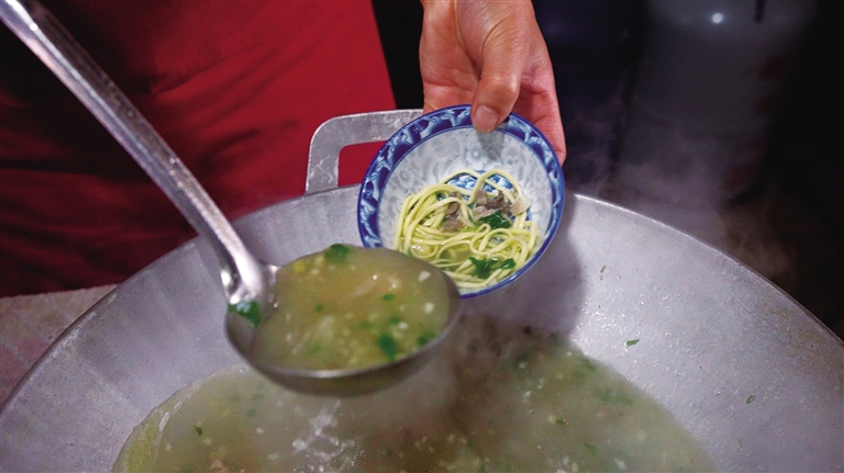 2010年,鹽井加加面被列入西藏自治區(qū)級非物質(zhì)文化遺產(chǎn)代表性名錄。37歲的果拉卓瑪,是這項技藝的傳承者之一。她回憶道,早年父母在街邊支攤賣面時,加加面只是再尋常不過的一道家常面食。如今,這碗面被賦予了文化符號的意義——食客們比拼碗數(shù),最高紀(jì)錄達(dá)147碗,若破紀(jì)錄,還能終生免費(fèi)吃面。“石頭計數(shù)、民歌敬酒,這些傳統(tǒng)習(xí)俗讓吃面變成了一場熱鬧的儀式?!惫楷斝χf。