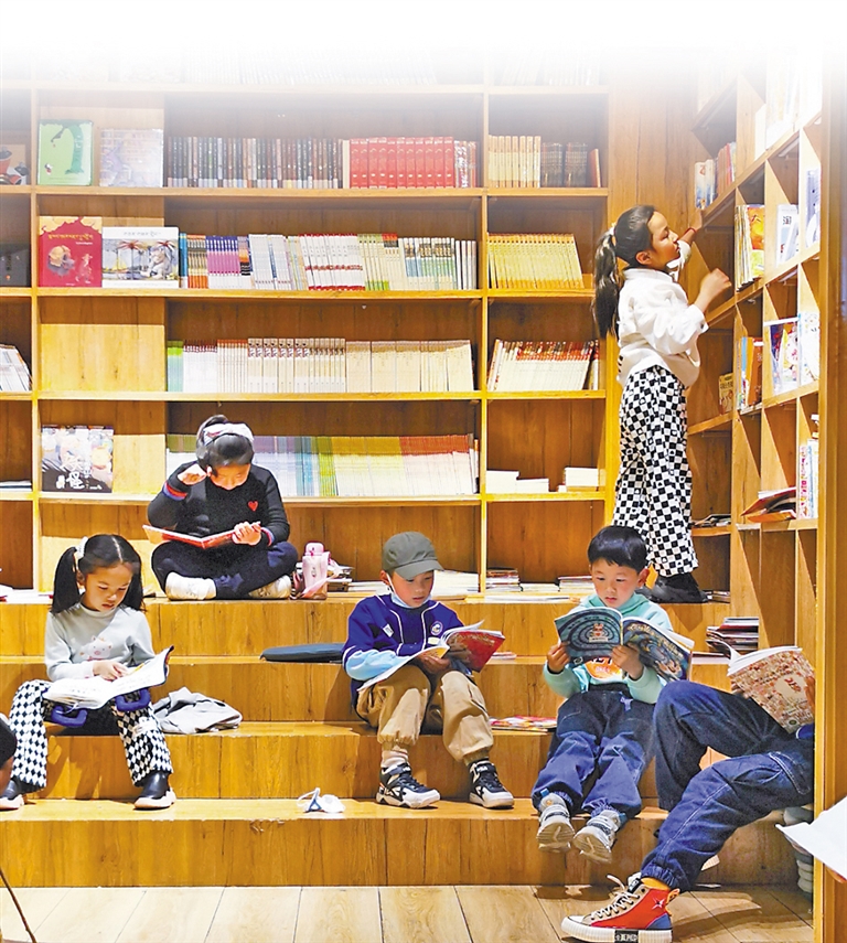 小朋友們?cè)谘胂矔砷喿x書籍。記者 曉勇 攝