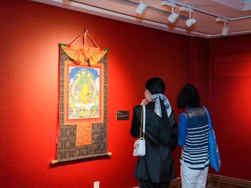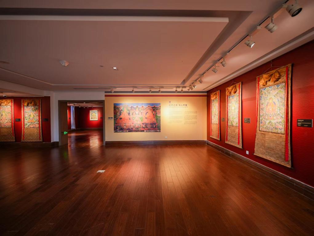 作為本次展覽的壓軸篇章,日喀則非遺藝術(shù)展區(qū)匯聚《八思巴畫(huà)傳》珍貴復(fù)制品與當(dāng)代唐卡精品共30余幅,構(gòu)建起從元代漢藏交流到新時(shí)代藝術(shù)創(chuàng)新的時(shí)空長(zhǎng)廊。