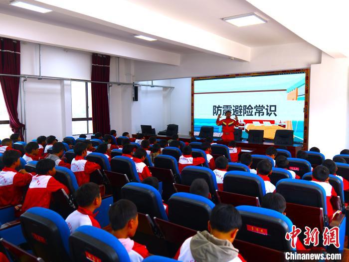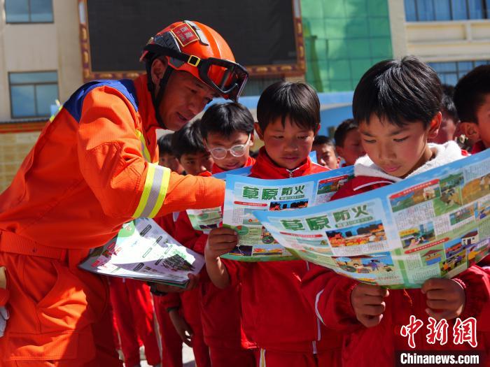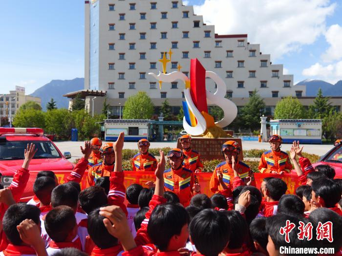 圖為消防救援人員組織學(xué)生進行防災(zāi)減災(zāi)知識互動。林芝森林消防支隊供圖