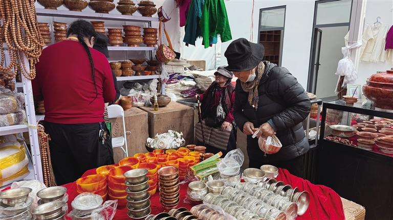參展商們也在最后一天全力沖刺,來自不同地域、經(jīng)營(yíng)不同品類商品的商家在展會(huì)上均收獲頗豐。來自尼泊爾的新白瑪塔西綜合商店老板拉魯,此次展銷會(huì)帶來了木碗、玉碗、銅碗等二十多類特色產(chǎn)品。他笑著表示:“銷量挺不錯(cuò)的,我們家的產(chǎn)品不僅品類豐富,價(jià)格也實(shí)惠。這已經(jīng)是我第八次來拉薩參加展銷會(huì)了,每次都能感受到拉薩消費(fèi)者的熱情,也收獲滿滿。”
