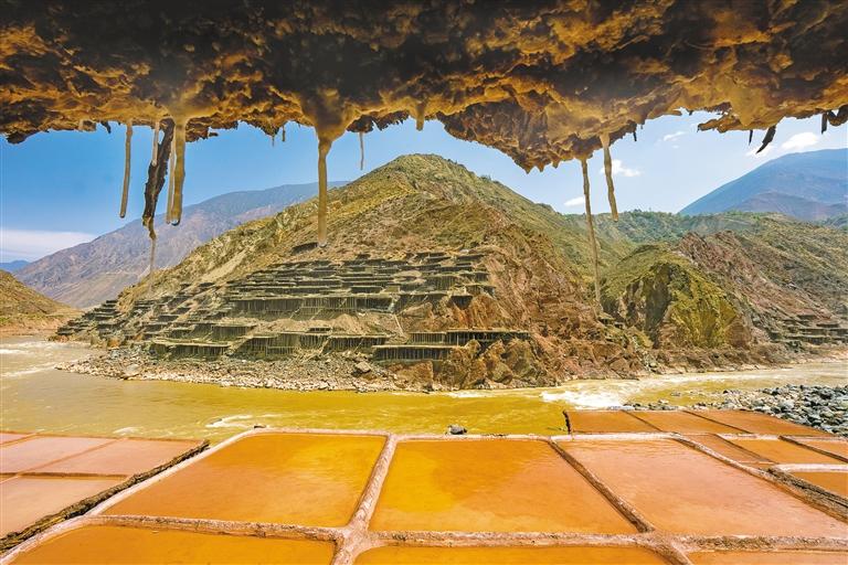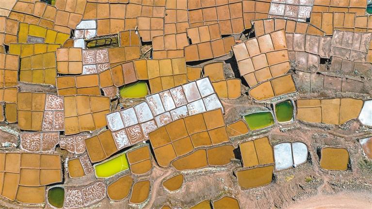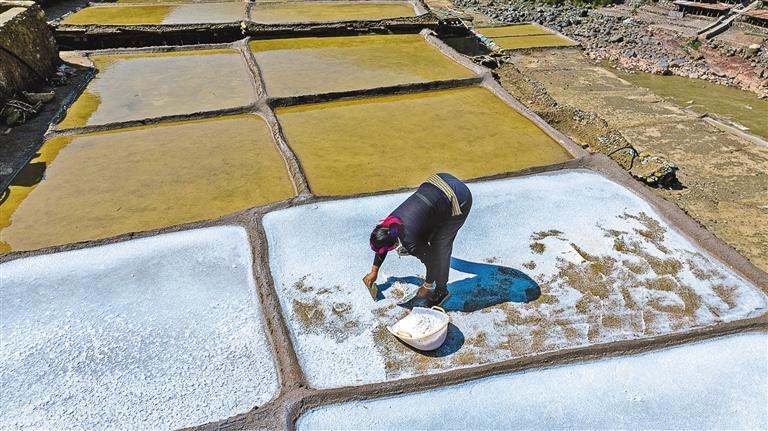 鹽田里,60歲的乃柯正和丈夫一起用木拍夯實(shí)鹽田?!艾F(xiàn)在用泵抽水輕松多了,但拍鹽田的手藝不能丟?!崩先说脑捳Z中,既有對(duì)科技的接納,也有對(duì)傳統(tǒng)的堅(jiān)守。鹽田下方,鹽晶垂落成簾,在山風(fēng)拂動(dòng)下閃爍微光,仿佛在訴說著什么。一塊塊鹽田如同一面面鏡子,既映照出千年文明的厚重,也折射著鄉(xiāng)村振興的希望。當(dāng)鹽民們輕掃鹽田,他們掃的不僅是晶瑩的鹽,更是一份在傳承與創(chuàng)新中守護(hù)的鄉(xiāng)愁。