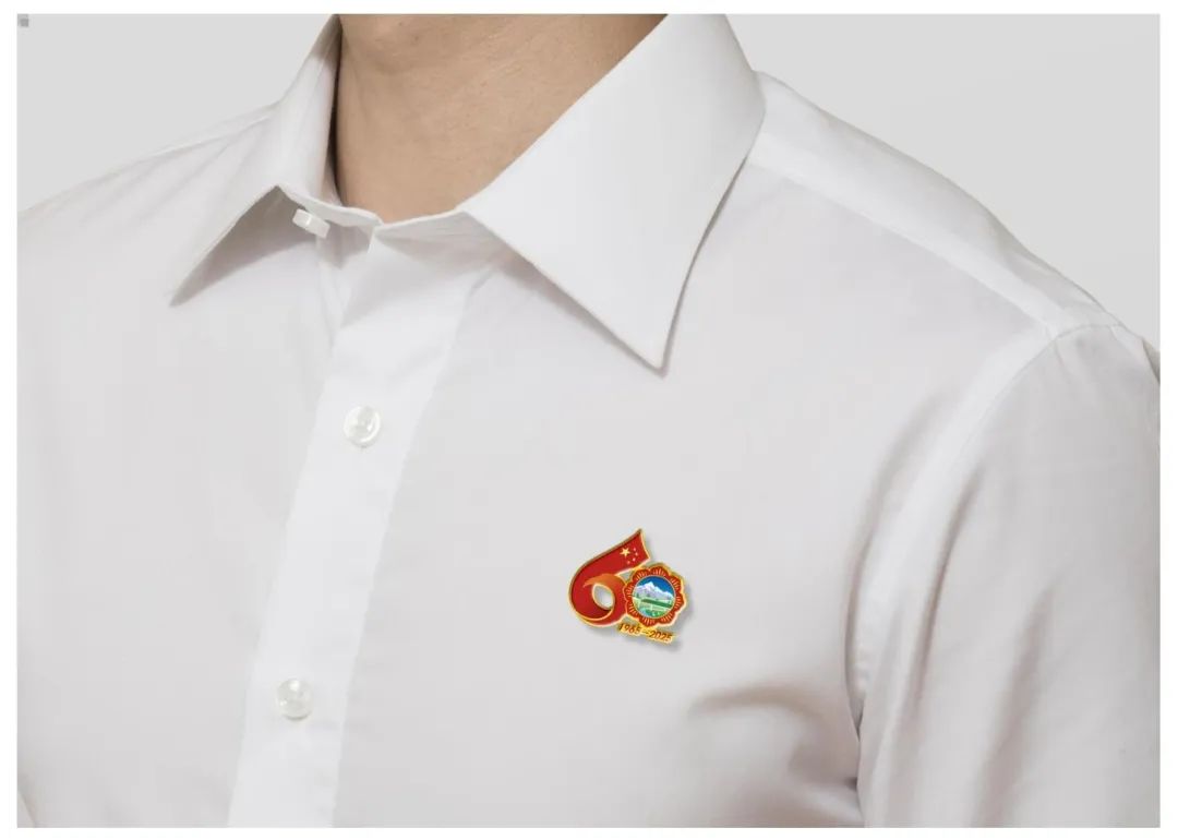 西藏自治區(qū)成立60周年慶?;顒?dòng)徽標(biāo)是由五星紅旗延展出的飄帶與格?;ò戥h(huán)構(gòu)成的數(shù)字“60”造型。飄揚(yáng)的五星紅旗象征著繁榮昌盛的祖國母親對(duì)西藏的關(guān)懷與呵護(hù),使西藏在砥礪奮進(jìn)的60年中綻放出燦爛的格?;ǘ洹N鞑貜?fù)興號(hào)、現(xiàn)代化新農(nóng)村、風(fēng)力發(fā)電、雪山、藏羚羊等代表了60年來西藏社會(huì)主義現(xiàn)代化建設(shè)取得的豐碩成果。“1965-2025”代表西藏自治區(qū)成立60周年。標(biāo)識(shí)兼具中華民族精神與西藏歷史底蘊(yùn),整體色彩使用了國旗紅,營造出喜慶、熱烈、祥和的氛圍。