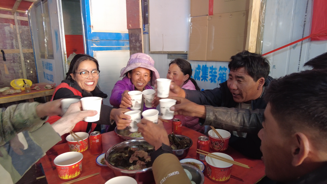 施工隊宿舍與村民安置點相距不過50米,這短短距離成了情感紐帶。施工隊裝了冷熱水龍頭,方便村民使用;村民借出洗衣機,幫工人解決洗衣難題;施工隊還專門留桶收集剩飯菜,用來喂村里牛羊。