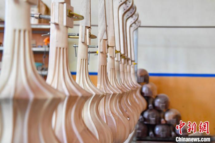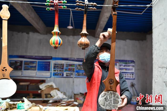 6月14日,記者走進(jìn)西藏自治區(qū)日喀則市拉孜縣熱薩鄉(xiāng),探訪中國(guó)國(guó)家級(jí)非物質(zhì)文化遺產(chǎn)“扎念琴制作技藝”的具體制作過(guò)程。扎念琴,又名六弦琴,是西藏傳統(tǒng)歌舞“堆諧”中最常用的彈撥樂(lè)器。扎念,藏語(yǔ)意為“悅耳動(dòng)聽之聲”。在西藏,扎念琴深受廣大群眾喜愛。2014年,“扎念琴制作技藝”入選第四批中國(guó)國(guó)家級(jí)非物質(zhì)文化遺產(chǎn)代表性項(xiàng)目名錄。據(jù)了解,扎念琴制作共有5道基本程序:第一步,將整根木材掏空,做成共鳴箱;第二步,制作中間空心的琴桿,裝上名為“卡杺”的面板;第三步,雕刻“馬頭”或“龍頭”形狀的琴頭,安裝在琴桿頂部;第四步,制作附在琴頭、呈半圓形、向后彎曲且中間開有弦槽的扎念弦軸。最后一步,挑選羊腸、牛筋、絲線等不同材料來(lái)制作琴弦。扎念琴制作技藝的特別之處在于,為了琴身的美觀,初制后還要通過(guò)雕刻馬頭、龍頭、火焰等形狀作為裝飾,讓扎念琴更具特色。圖為制作完成的扎念琴。貢確 攝