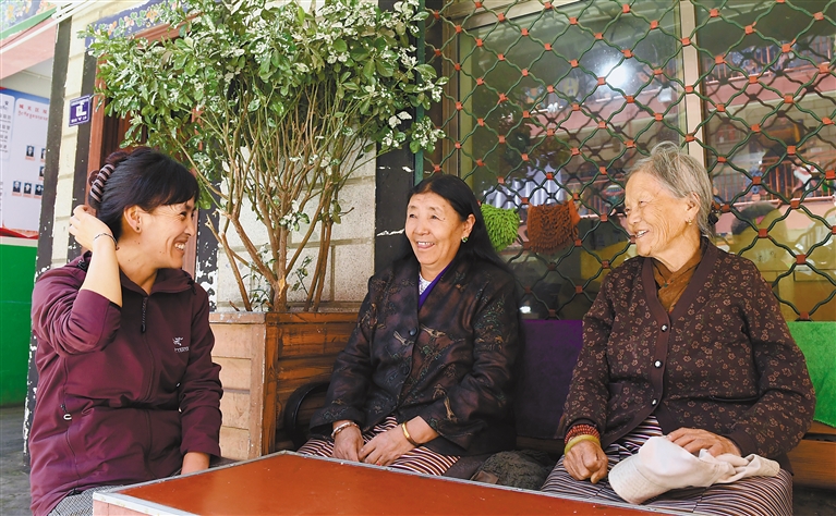 改造不僅改善了居住條件,更密切了鄰里情誼。午后,老人們坐在長(zhǎng)椅上曬太陽,孩子們?cè)谠鹤永镦覒蛲嫠?,婦女們?cè)谒堫^旁一邊洗衣一邊說笑。普布普赤說:“居住條件越來越好,大家心齊氣順,大院里漢、藏、回等多個(gè)民族的居民,相處得也十分融洽?!?/p>