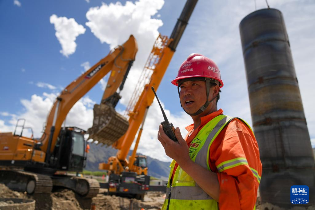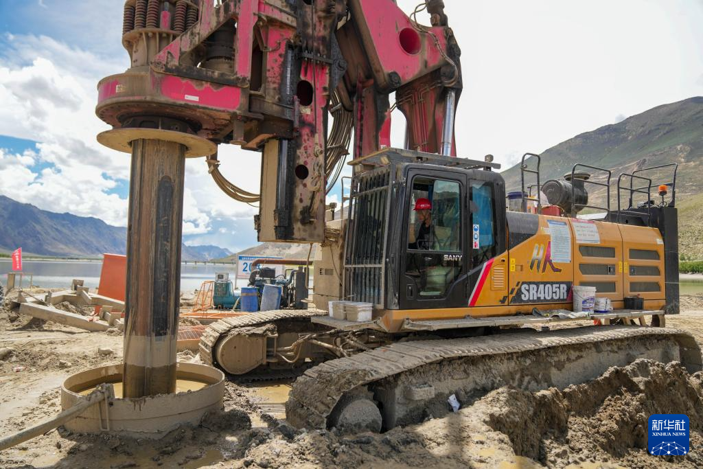工人在進(jìn)行樁基機(jī)械成孔作業(yè)(6月18日攝)。新華社記者 晉美多吉 攝