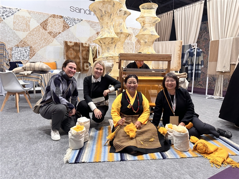 上海市援藏干部人才引進的沙涓攜西藏江孜氆氌亮相2024年法國巴黎Maison&Objet展會。