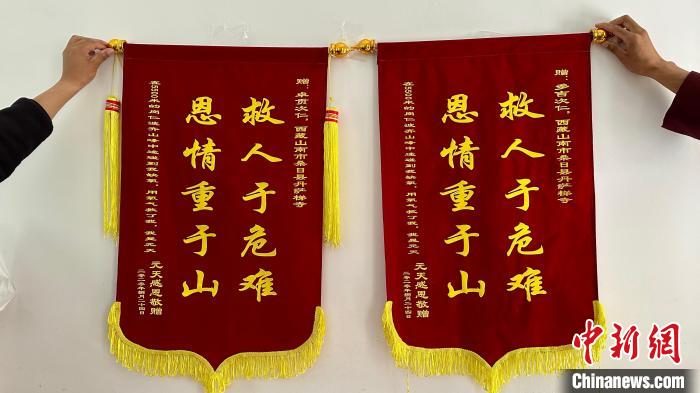 圖為寺內(nèi)僧人因救人收到的錦旗。 謝牧 攝