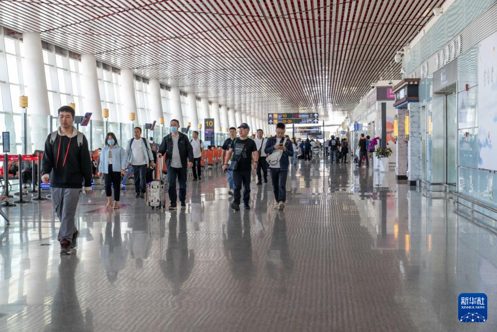 7月18日,旅客在拉薩貢嘎國際機場T3航站樓前往登機口。新華社記者 旦增尼瑪曲珠 攝??