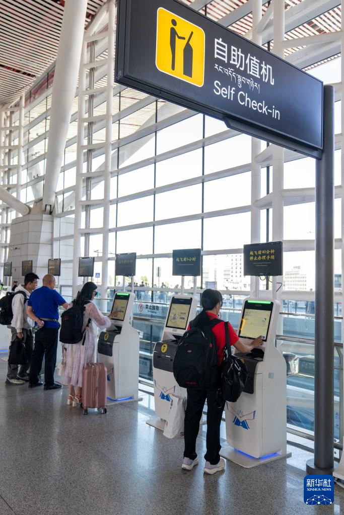 7月18日,旅客在拉薩貢嘎國際機場自助值機。新華社記者 旦增尼瑪曲珠 攝?