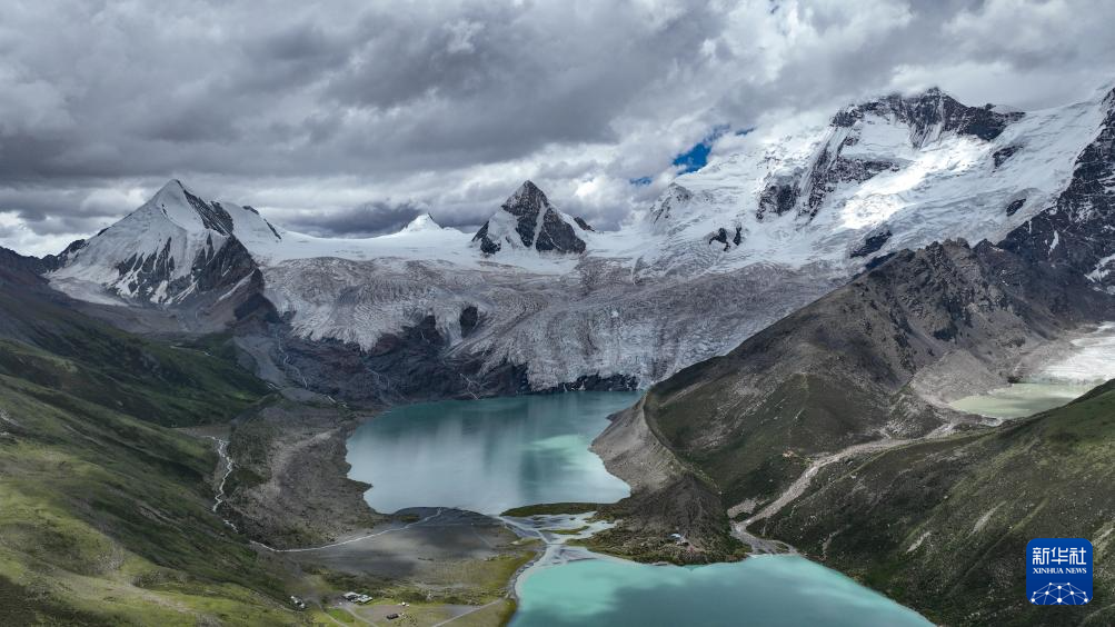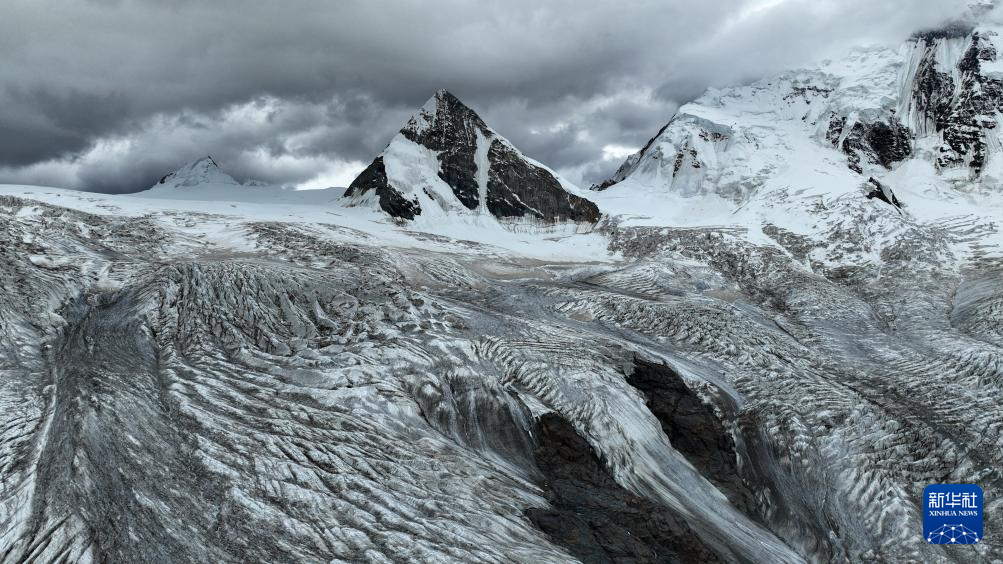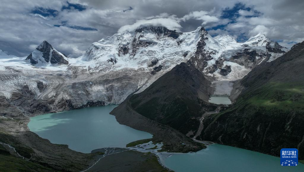 7月19日拍攝的薩普雪山及延伸的冰川(無人機(jī)照片)。新華社記者 晉美多吉 攝