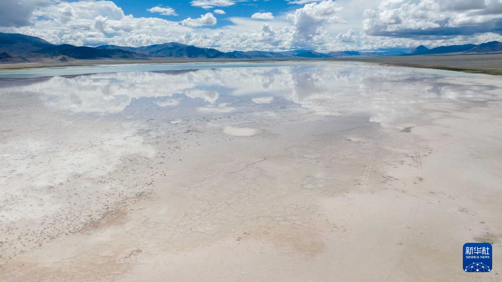 7月20日拍攝的位于西藏阿里地區(qū)革吉縣的鹽湖一景(無人機(jī)照片)。新華社記者 旦增尼瑪曲珠 攝