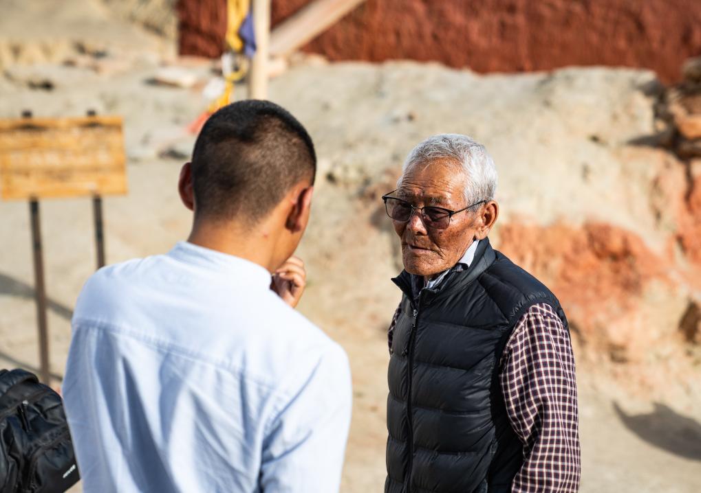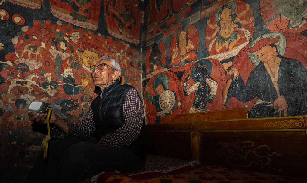 “這些壁畫,是1000多年前畫上去的?!?7歲的東嘎村村民仁增旺扎拄著拐杖,向游客耐心講解。盡管已從文保員的崗位上退休,但20多年來守護(hù)石窟的習(xí)慣早已刻進(jìn)了生活。他的身影仍不時(shí)出現(xiàn)在石窟間,像往常一樣,講述這些千年壁畫背后的故事。
