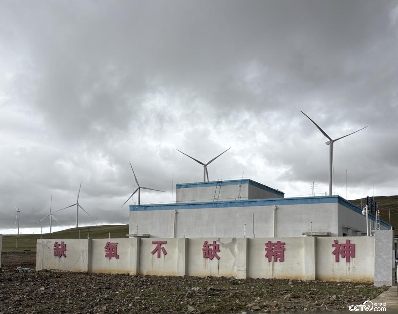 在哲古草原,巨大的風(fēng)機(jī)葉片緩緩轉(zhuǎn)動(dòng),劃破長(zhǎng)空。這里是三峽措美哲古風(fēng)電場(chǎng)——全球海拔最高的在運(yùn)行風(fēng)電場(chǎng),墻上“缺氧不缺精神”的標(biāo)語(yǔ),正是技術(shù)突破與綠色發(fā)展的信念的最好寫(xiě)照。