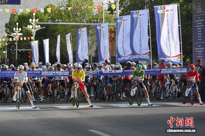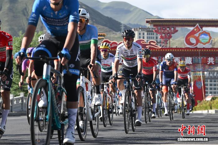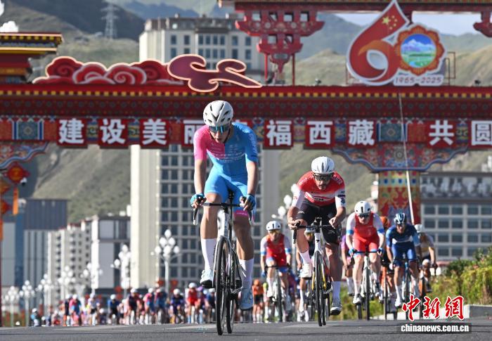 8月9日,2025中國西藏第六屆跨喜馬拉雅國際公路自行車極限賽拉薩賽段(第三賽段)完賽。本賽段為拉薩繞圈賽,起點拉薩市西藏博物館,終點布達(dá)拉宮廣場,全程約92.53公里。圖為參賽車手在比賽中。中新社記者 貢嘎來松 攝