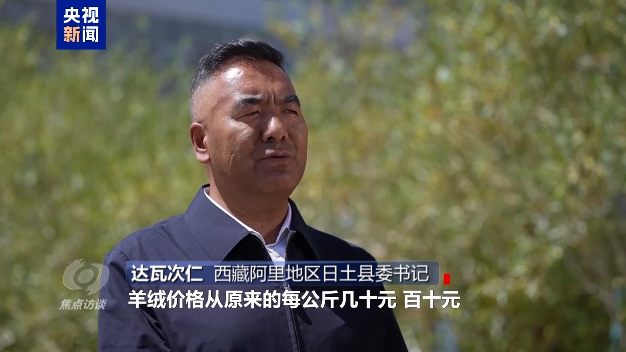 西藏阿里地區(qū)日土縣委書記 達瓦次仁:羊絨價格從原來的每公斤幾十元、百十元基本現(xiàn)在穩(wěn)定到了三百多元每公斤。