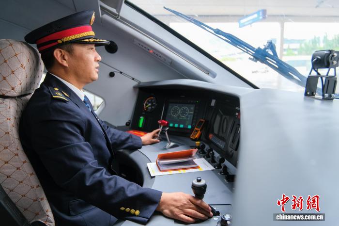 圖為6月20日,斯朗旺扎在高原復(fù)興號駕駛室,如今他已成為高原復(fù)興號動車組資深司機(jī)。中新網(wǎng)記者 江飛波 攝