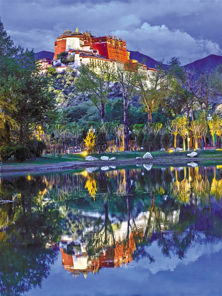 站在藥王山觀景臺(tái)眺望,重獲新生的水系如綠色飄帶擁抱著布達(dá)拉宮。