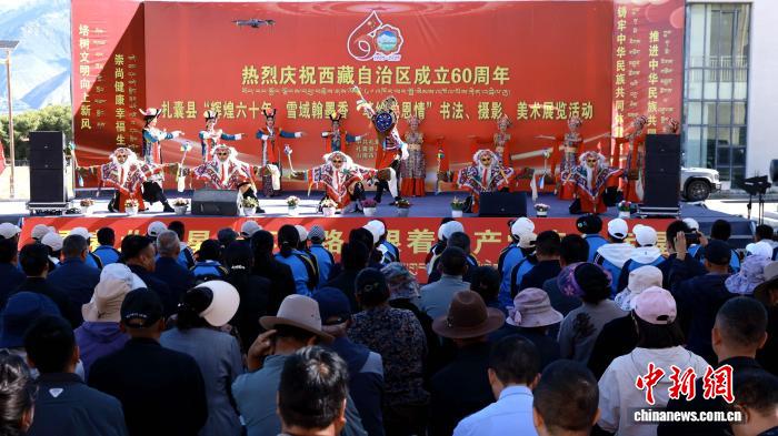 開幕式上,藏族舞蹈與傳統(tǒng)音樂交織,來自扎囊縣和鄰近曲松縣的表演者以靈動舞姿詮釋高原生活的熱情,歡快的節(jié)奏讓現(xiàn)場掌聲不斷。這場融合了視覺與聽覺的藝術開場,為展覽營造了濃郁的文化氛圍。