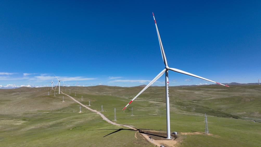 2025年7月17日拍攝的那曲市歐瑪亭嘎100兆瓦風(fēng)電場。新華社記者 晉美多吉 攝