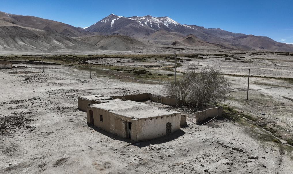 2023年5月28日拍攝的西藏阿里地區(qū)噶爾縣扎西崗鄉(xiāng)典角村在20世紀(jì)60年代修建的“一代房”的殘存。新華社記者 晉美多吉 攝。