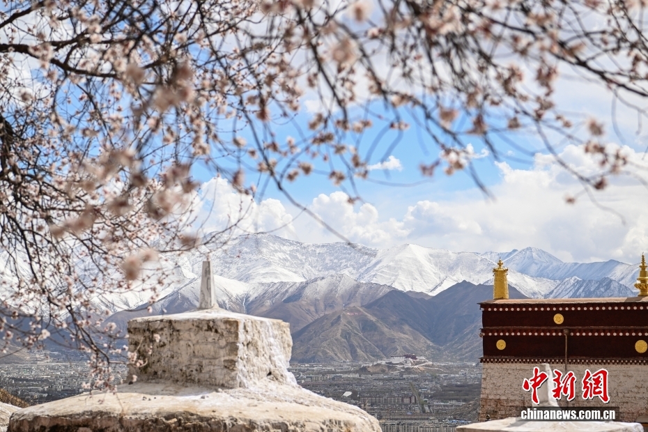 位于西藏拉薩北部山坳里的古剎帕邦喀周圍桃花盛開(kāi),吸引眾多游客前來(lái)觀光拍照。圖為帕邦喀周圍盛開(kāi)的桃花和遠(yuǎn)處的布達(dá)拉宮。中新社記者 貢嘎來(lái)松 攝