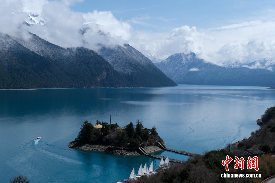 位于西藏林芝的巴松錯(cuò)迎來(lái)一場(chǎng)春雪,雪后風(fēng)光如畫。圖為巴松錯(cuò)與遠(yuǎn)處的雪山風(fēng)光。中新社記者 江飛波 攝