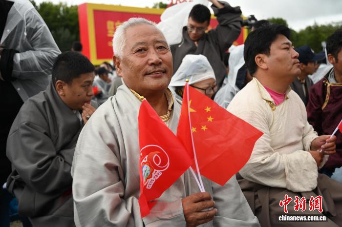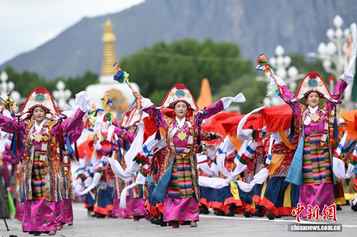 8月21日,拉薩古城居民羅桑群佩在布達拉宮廣場參加慶?;顒?。中新社記者 趙朗 攝