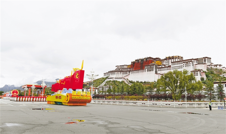 “旗幟引領(lǐng)”彩車。本網(wǎng)記者 次仁平措 攝