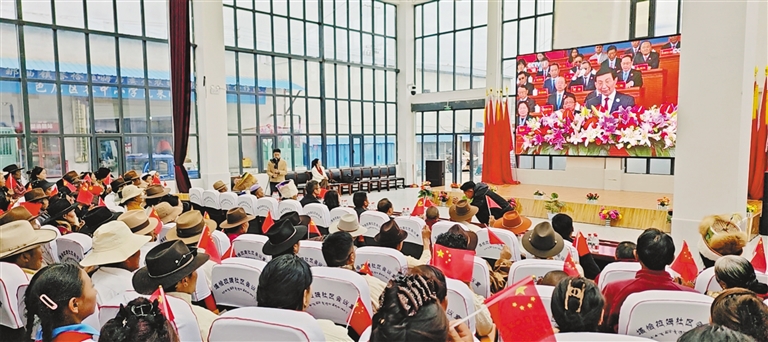 海拔5373米的浪卡子縣普瑪江塘鄉(xiāng)干部群眾通過多種形式收聽收看大會(huì)盛況,共同見證這一重要的歷史時(shí)刻。普瑪江塘鄉(xiāng)黨委書記多吉旺久說:“60年來,普瑪江塘鄉(xiāng)從過去靠天吃飯到如今靠科技吃飯,巨大的變化離不開黨中央的親切關(guān)懷和黨的民族政策,我們一定銘記黨的恩情,永遠(yuǎn)聽黨話、感黨恩、跟黨走?!?/p>