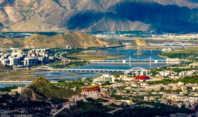 這是2025年7月30日拍攝的拉薩河風(fēng)光,由近及遠(yuǎn)分別是連心橋、柳梧大橋、和美橋和青藏鐵路拉薩河特大橋。圖片來(lái)源:新華社